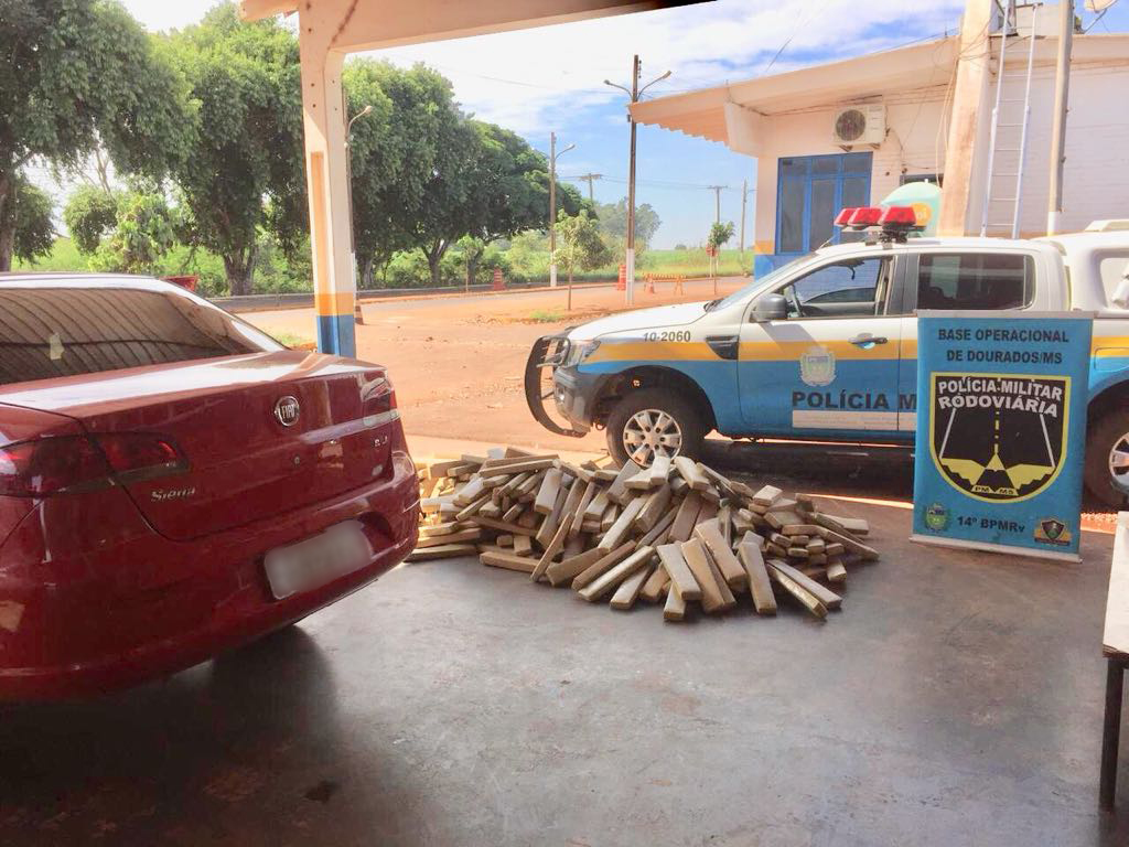 Dourados (MS) – Nesta quinta-feira, dia 03 de Maio uma equipe do BPMRv em fiscalização em frente à Base Operacional de Dourados, MS 162 Km 13 deu ordem de parada ao veículo Fiat/Siena com placas de São Paulo -SP que seguia de Itahum para Dourados.