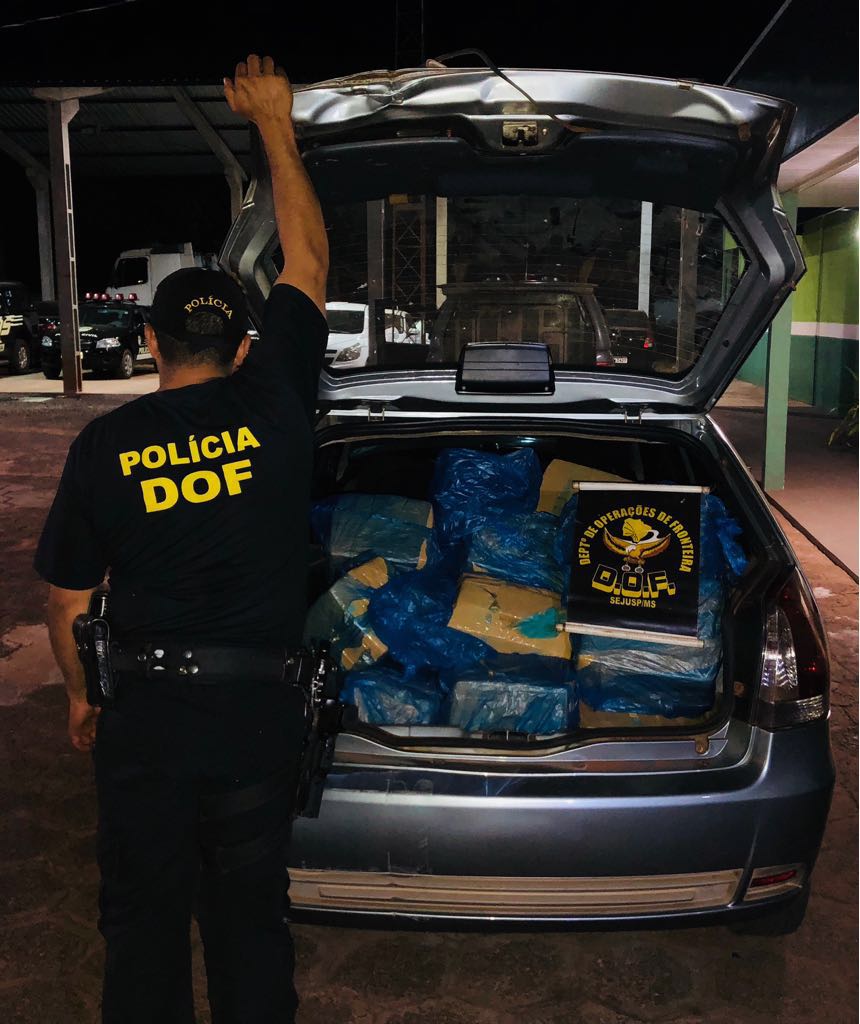 Iguatemi (MS) – Policiais do Departamento de Operações de Fronteira (DOF) apreenderam, na noite desta quarta-feira (02) por volta das 19h30, um veículo Fiat Pálio carregado com vários volumes, de maconha. A apreensão ocorreu durante o policiamento