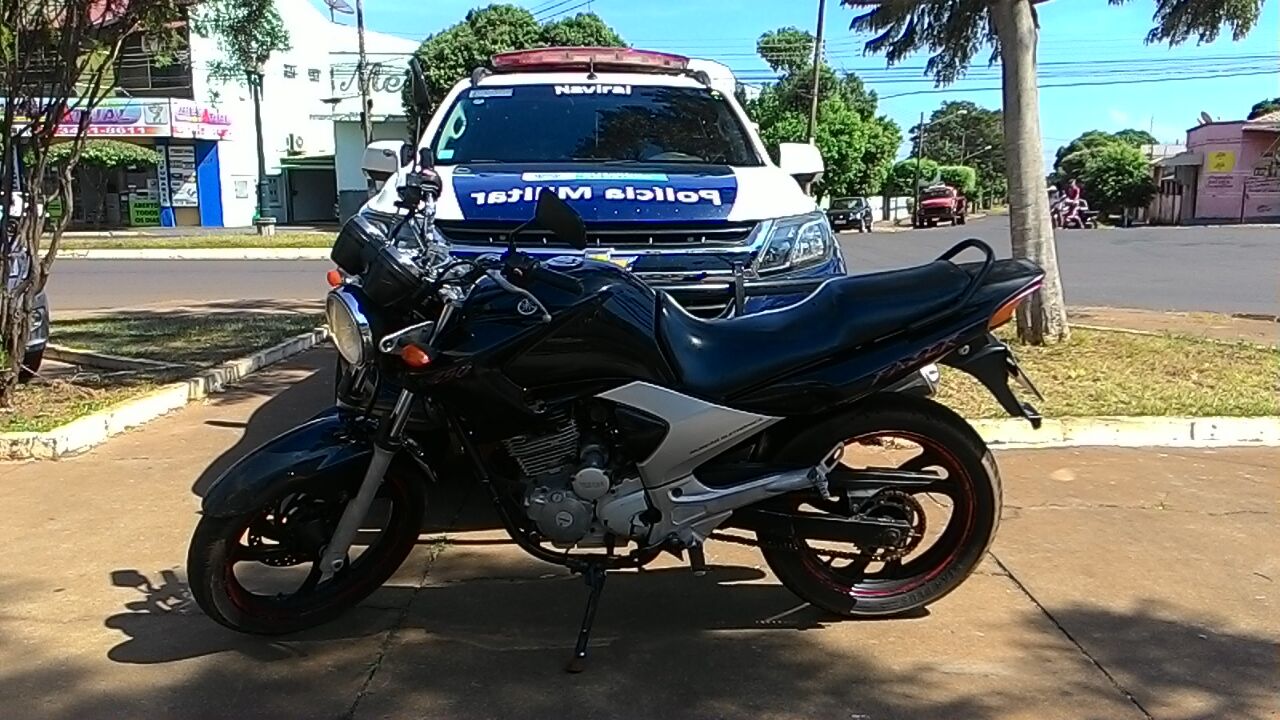 Naviraí (MS) – Na manhã de quarta-feira (02), por volta das 11h00min, policiais militares lotados no 12º Batalhão de Polícia Militar de Naviraí, receberam denúncia, via Central de Operações, de que uma motocicleta, produto de furto, estaria numa