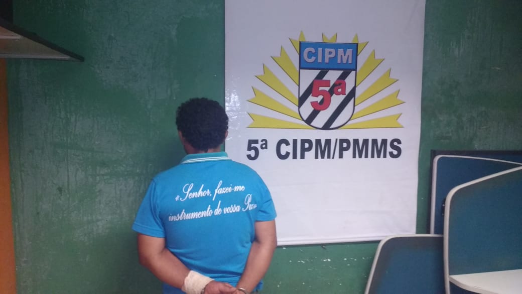 Campo Grande (MS) Nesta quinta – feira volt das 14h a equipe Policial do Pelotão Popular prendeu um homem que esfaqueou a vítima , que segundo ele foi vinongança por uma outra tentativa de homicídio em data anterior . O fato ocorreu na rua
