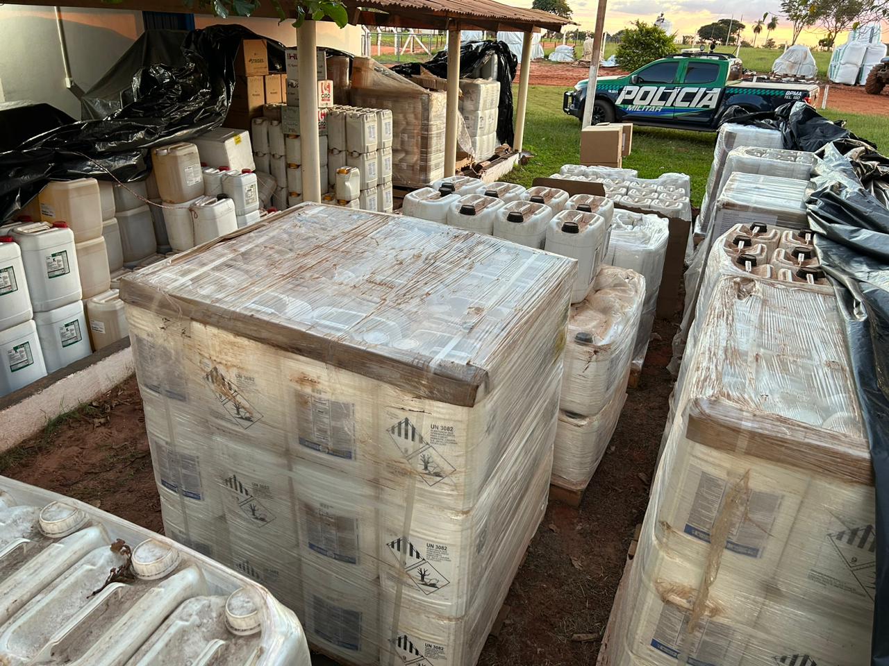 Campo Grande (MS) – Durante fiscalização ambiental em uma fazenda no município de Tacuru, Policiais Militares Ambientais de Mundo Novo localizaram ontem (12) no final da tarde, agrotóxicos que eram armazenados em descumprimento à legislação no