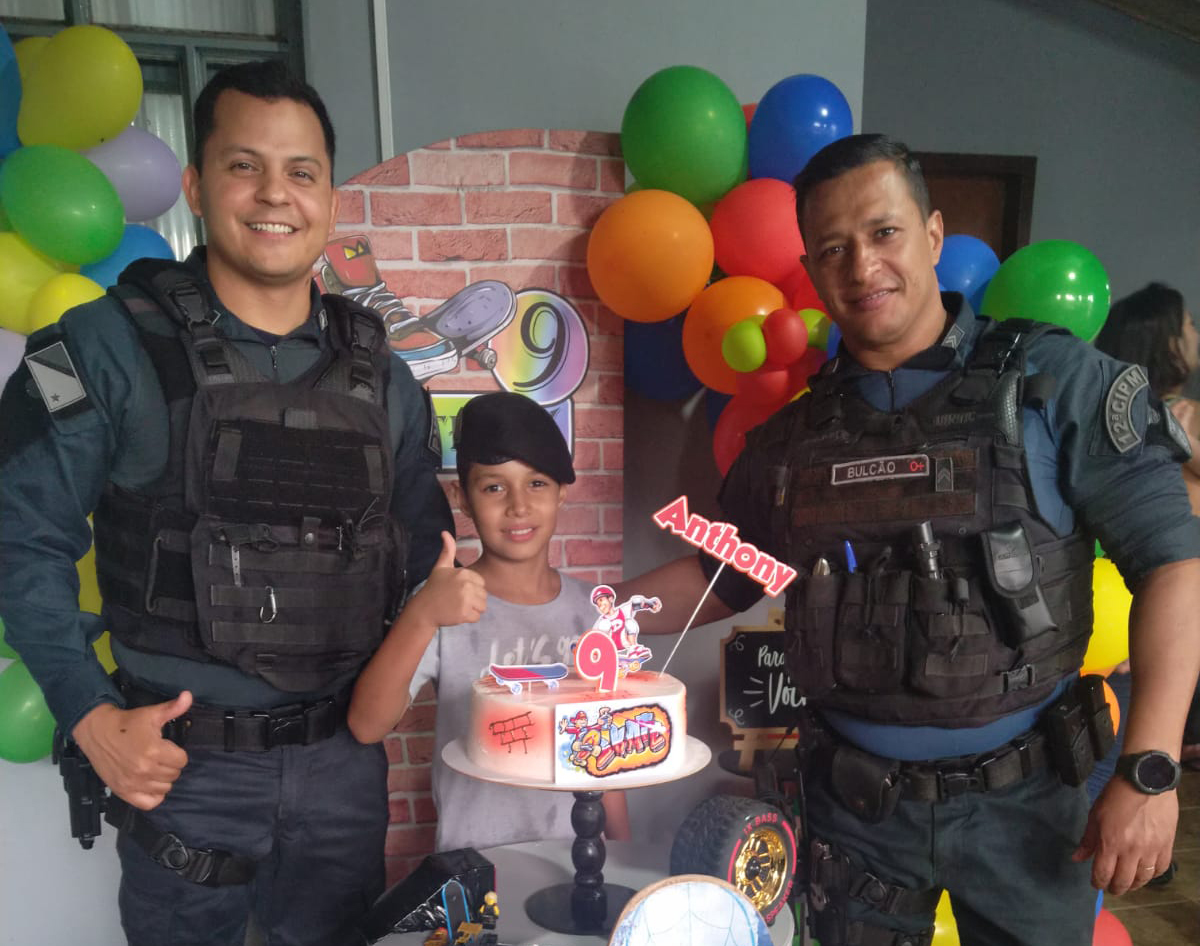 São Gabriel do Oeste (MS) – Na data de hoje, (11), por volta do meio dia, policiais militares do 12ª CIPM fizeram presença no aniversário de 9 anos de um fã da Polícia Militar, o jovem Anthony. O pai do jovem, Luan Soster, ligou na Polícia