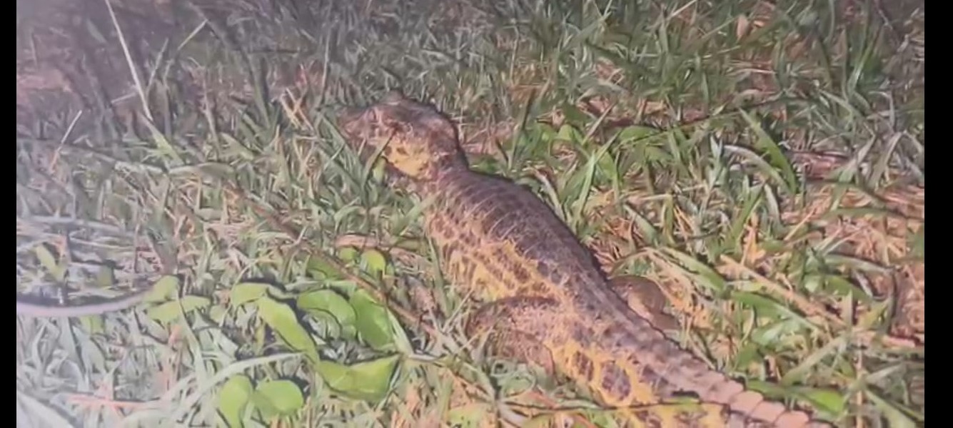 Campo Grande (MS) – Policiais Militares Ambientais de Miranda realizaram a captura de um animal silvestre da espécie Caiman yacare (jacaré) no centro da cidade. Um funcionário (48) do hospital municipal de Miranda acionou a PMA hoje (11) às 9h00,