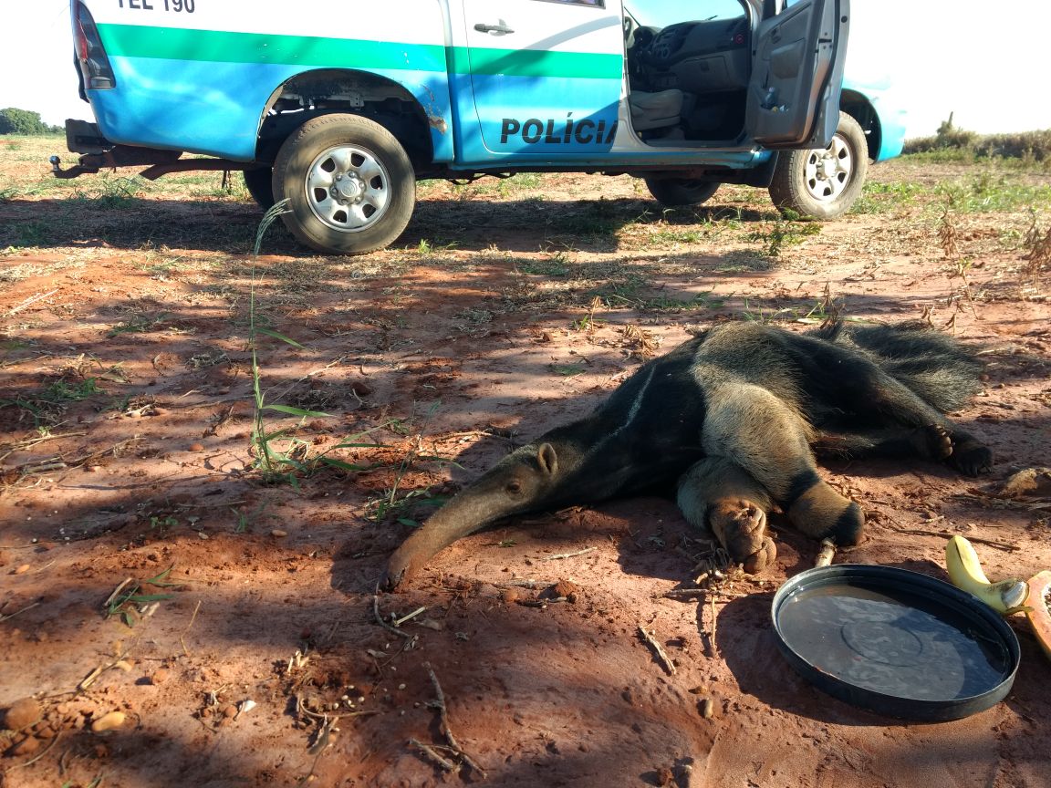 Campo Grande (MS) – Policiais Militares Ambientais de Batayporã foram acionados hoje (17) no final da tarde por funcionários da secretaria de meio ambiente da cidade de Taquarussu para capturar um animal da espécie Tamanduá-bandeira que teria sido