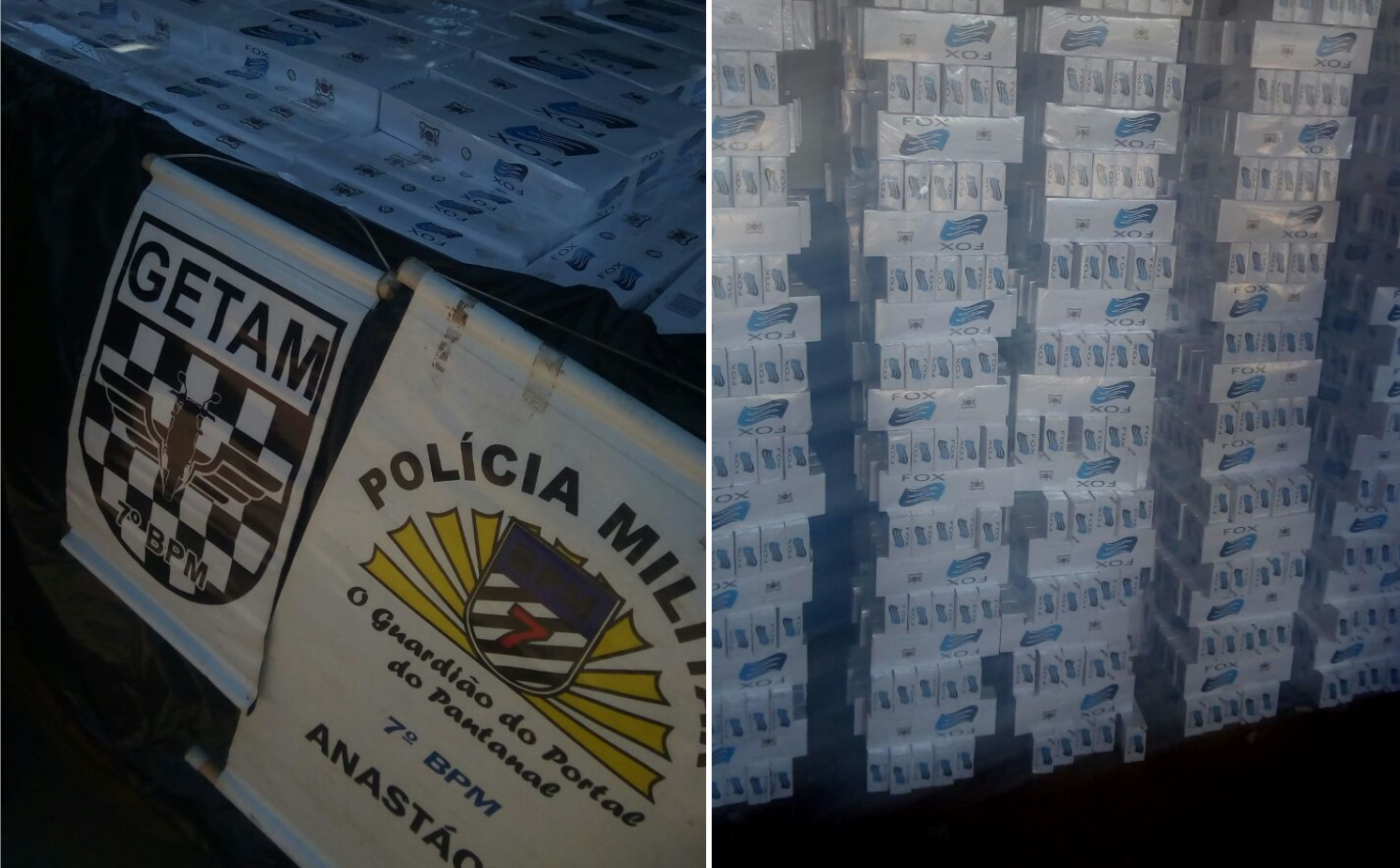 Aquidauana (MS) – As equipes de Radiopatrulha de Anastácio e Getam de Aquidauana realizaram hoje (11.04), uma grande operação que resultou na prisão de três pessoas e apreensão de milhares de cigarros oriundos de Ponta Porã. O fato se deu por volta