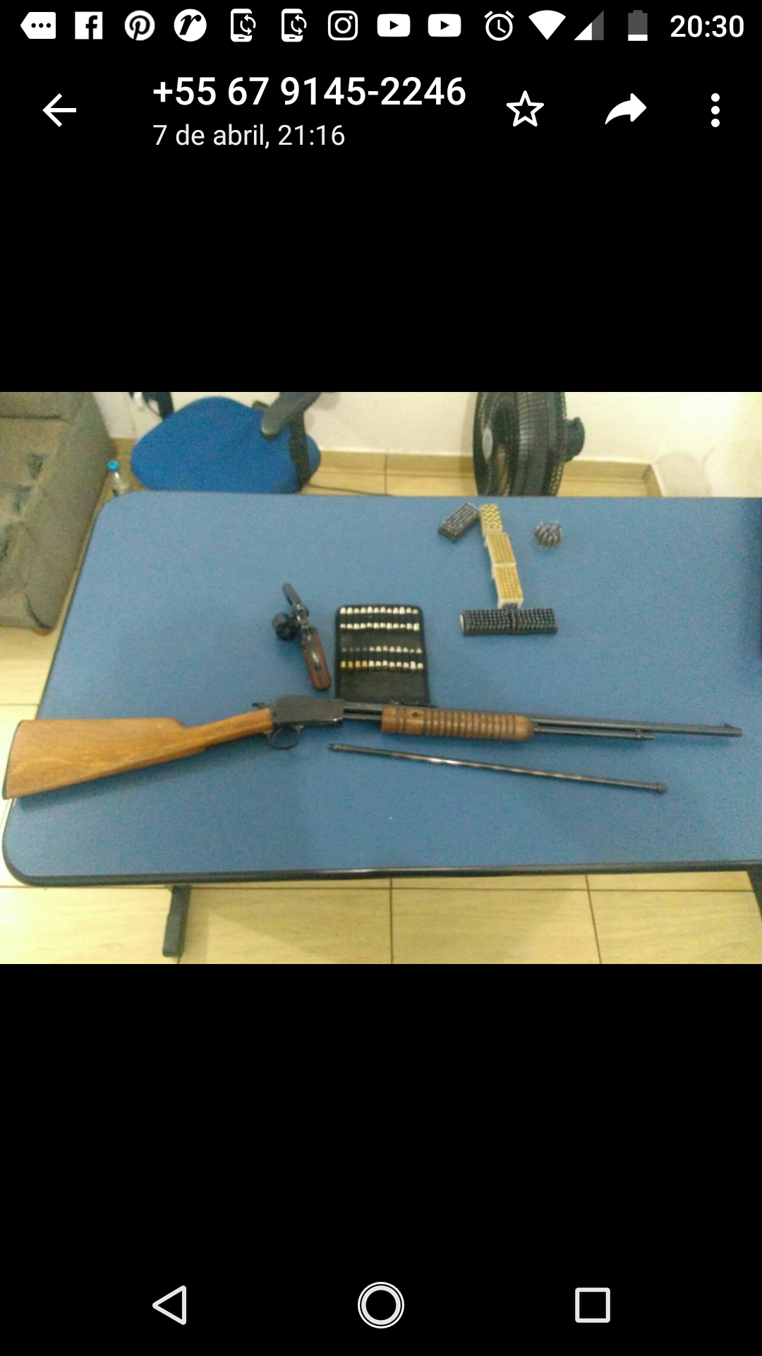 Campo Grande (MS) Neste fim de semana dia 7 de abril foram apreendidos pela equipe do Pelotão Popular um revólver, uma espingarda 250 munições de chumbinho, 300 munições de cal.22e 24 munições de calibre 38 em uma residência onde houve uma