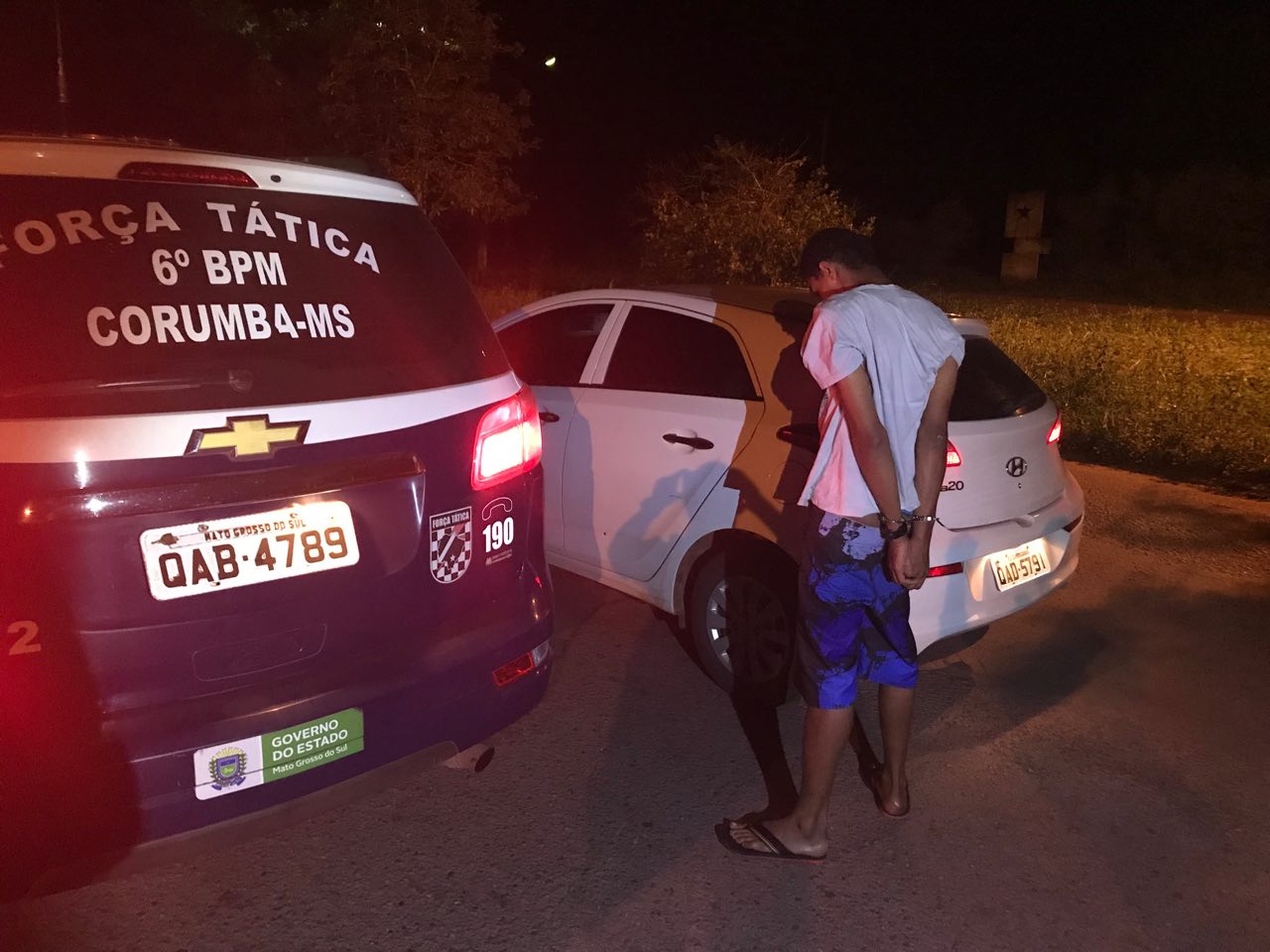 Corumbá (MS) – Sexta –feira (06), por volta das 04 horas a equipe de Força Tática foi acionada para averiguar uma denúncia em que segundo informações um veículo HB20 de cor branca, havia sido roubado às 22 horas de quinta-feira (05) em Campo