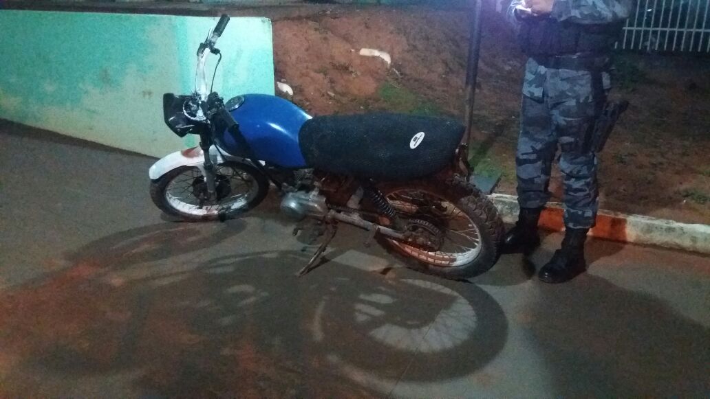 Coxim (MS) – Policiais militares da Força Tática de Coxim na noite de ontem (02), apreenderam uma motocicleta adulterada. A Guarnição de Serviço recebeu uma denúncia informando que na Rua Frei Cirino no Bairro Senhor Divino havia uma motocicleta