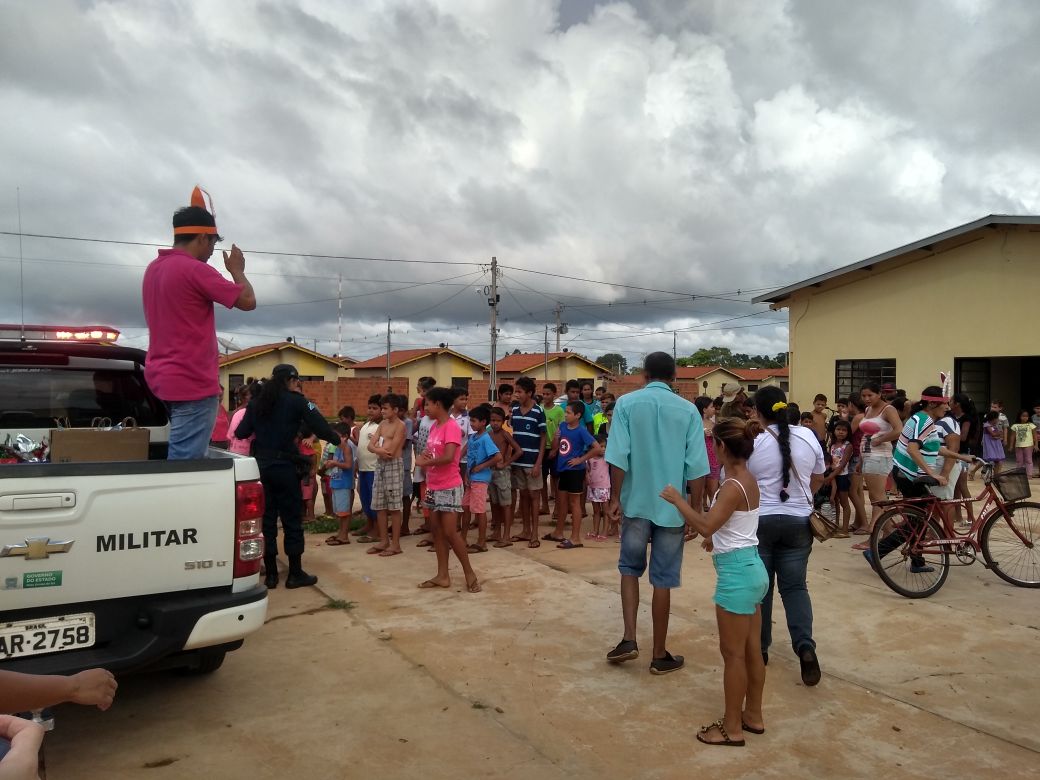Fátima do Sul(MS) no domingo de Páscoa foram distribuídos os chocolates arrecadados na campanha “Páscoa Feliz” pelo Conselho Comunitário de Fátima do Sul. No total foram 250 (duzentas e cinquenta) crianças, do bairro Coahb onde residem