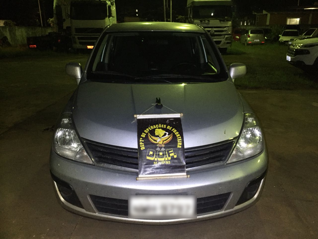Amambai (MS) – Policiais do Departamento de Operações de Fronteira (DOF) apreenderam na tarde de domingo (1), por volta das 18h, um veículo Nissan Tiida Sedan, de cor prata com sinais de identificação adulterados, numeração do motor era de outro