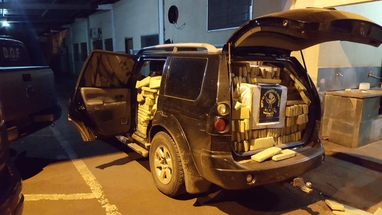 Jardim (MS) – Policiais do Departamento de Operações de Fronteira (DOF) apreenderam, na noite de domingo (25) por volta das 19h30, um veículo Pajero Sport, com placas de Campo Grande, MS transportando vários volumes prensados de uma substância