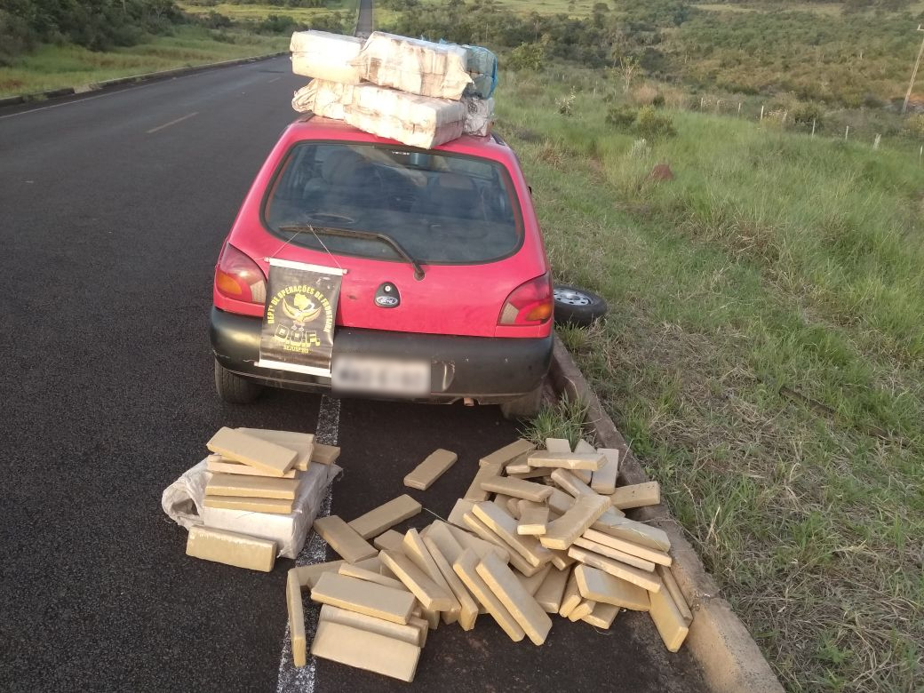 Tacuru (MS) – Policiais do Departamento de Operações de Fronteira (DOF) apreenderam, na tarde de segunda-feira (26) por volta das 16h, um veículo Ford Fiesta de cor vermelho carregado com 221 volumes prensados, de uma substância aparentando ser maconha,
