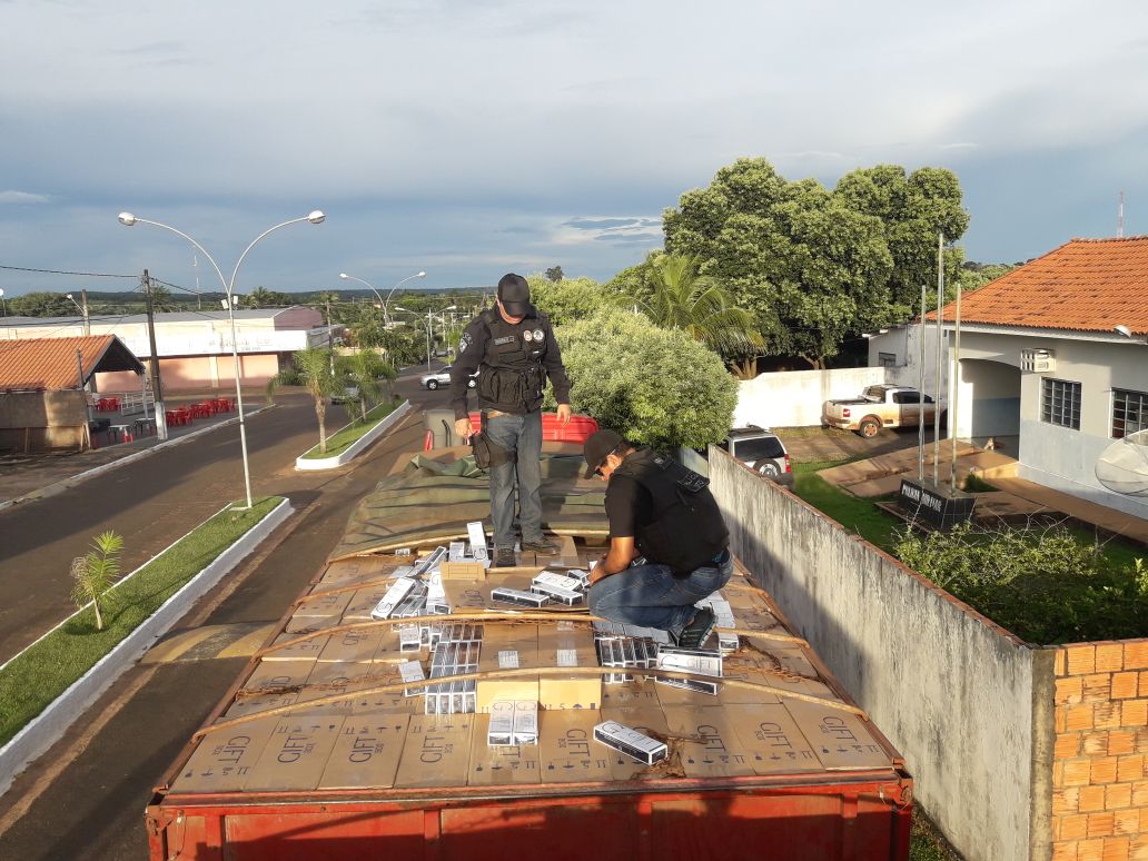 Durante operação policial integrada pela Polícia Militar e Civil de Costa Rica e Alcinópolis, Rotai de Coxim, PRF e GTO/Costa Rica realizada nesta sexta-feira (9) foi apreendida uma carreta bitrem carregada com cigarros contrabandeados. Na ação policial