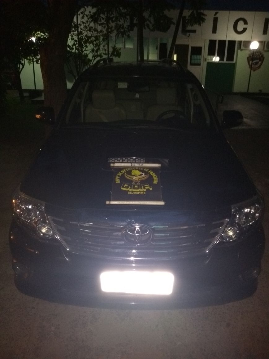 Mundo Novo (MS) – Policiais do Departamento de Operações de Fronteira (DOF) prenderam na tarde de segunda-feira (26), por volta das 17h, um veículo Toyota SW4 de cor preta e placas de São Paulo, SP por estar com o Certificado de Registro Veicular