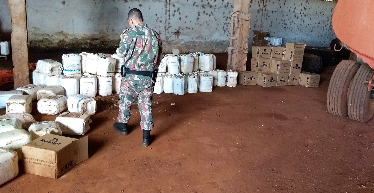 Campo Grande (MS) – Durante fiscalização ambiental em uma fazenda no município de Aral Moreira, Policiais Militares Ambientais do Grupamento de Amambai (criado neste mês) localizaram ontem (23), embalagens e agrotóxicos que eram armazenadas de forma