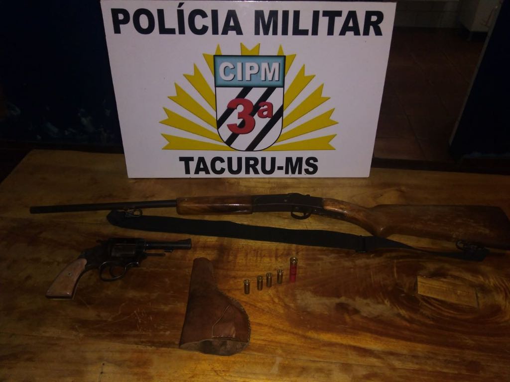 Amambai (MS) – Na noite de quarta-feira (14), no município de Tacuru, os policiais militares receberam uma denuncia que um homem estaria realizando disparo de arma de fogo em um bar da cidade. Ao chega no local, o autor um homem de 43 anos, foi abordado e