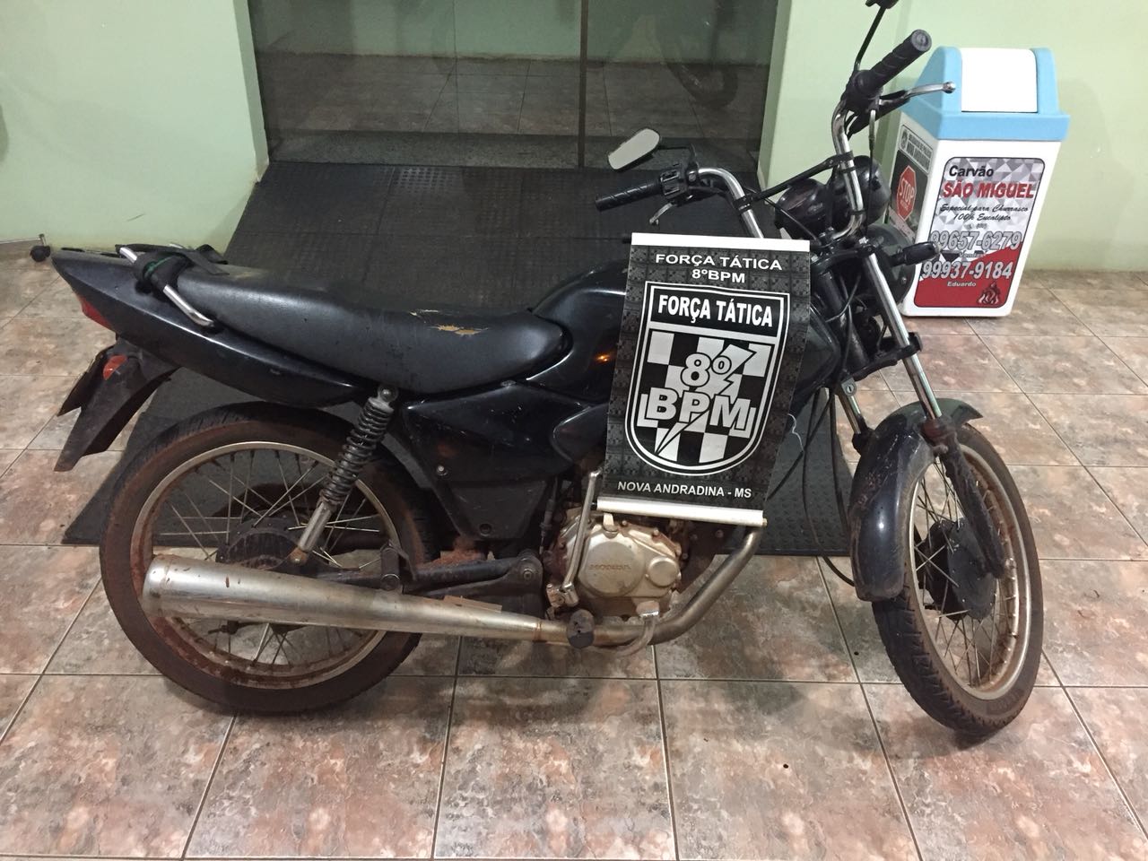 Na segunda (12) a equipe de Força Tática recuperou uma motocicleta furtada no dia 02 do corrente mês e ainda prendeu o condutor que estava com um mandado de prisão a ser cumprido. No início da noite, policiais da forca tática realizavam rondas pelo