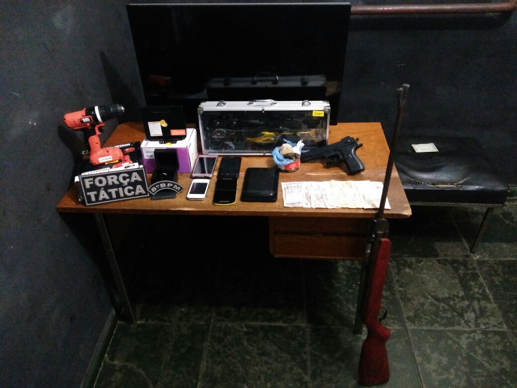 Policiais da Força Tática de Nova Andradina que reforçaram o efetivo local durante o Batafolia 2018, prendeu cinco pessoas na segunda (12). Quatro pessoas foram presas por associação criminosa, tráfico e posse de arma de fogo, após receberem denúncias