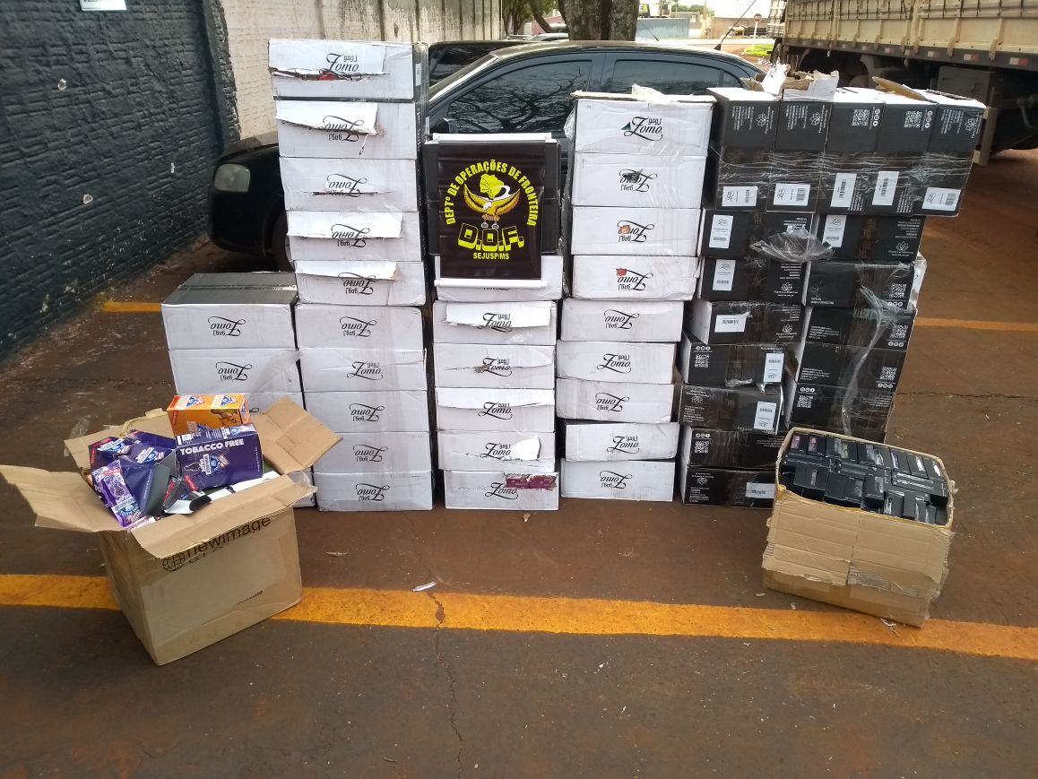Laguna Carapã (MS) – O Departamento de Operações de Fronteira (DOF) apreendeu na tarde de sexta-feira (9), por volta das 17h30, pneus e produtos contrabandeados do Paraguai transportados em um caminhão acoplado a um semirreboque com placas de Amambai,