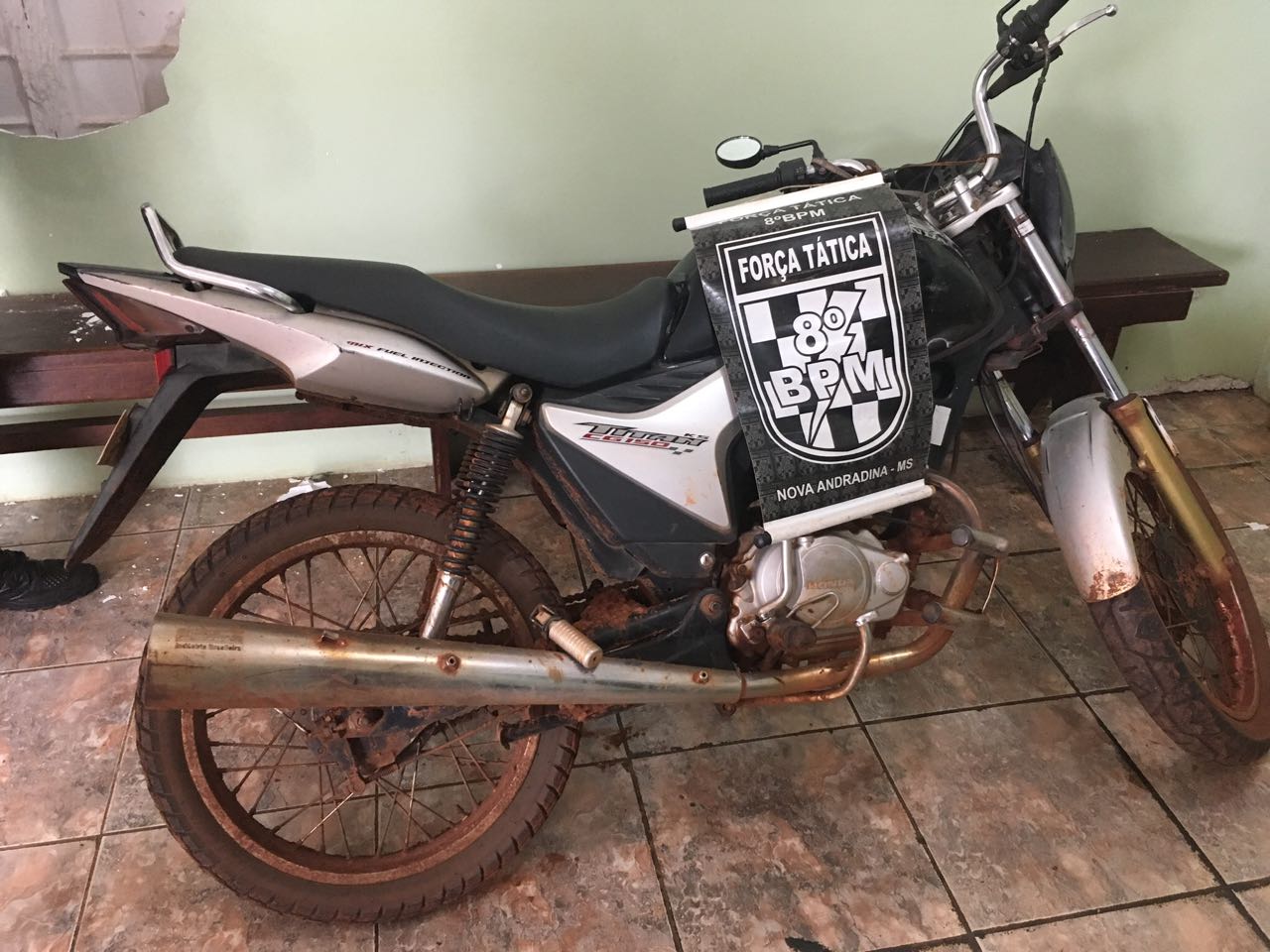 Nesta terça (26), a equipe da Força Tática do 8º Batalhão de Nova Andradina apreenderam, no assentamento Santa Clara, uma motocicleta com queixa de furto em Primavera do Leste, no Estado do Mato Grosso. O jovem de 19 anos que conduzia a motocicleta