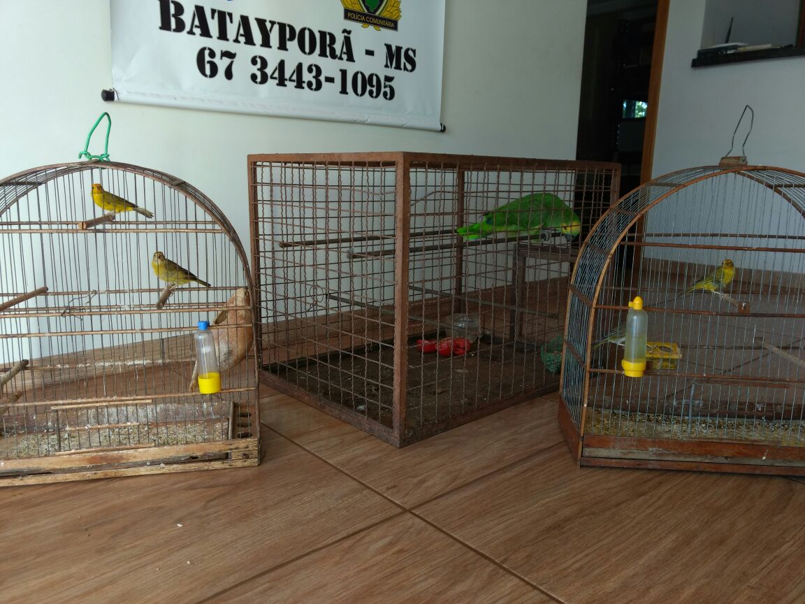 Campo Grande (MS) – Policiais Militares Ambientais de Batayporã receberam informações hoje (15), de que um homem matinha aves ilegalmente em cativeiro na cidade Nova Andradina. A PMA foi à residência do denunciado e encontrou gaiolas com quatro