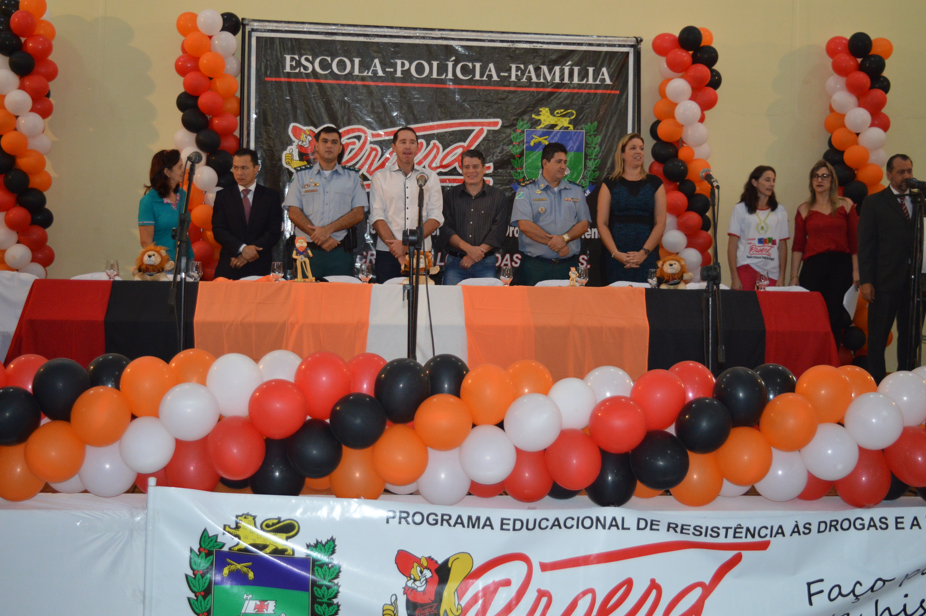 A equipe do PROERD da 3ª CIPM realizou duas formaturas nesta quinta-feira (7). A primeira aconteceu pela manhã na cidade de Sete Quedas, onde 70 os alunos do 5º e do 7º ano da Escola Municipal Inácio de Castro se formaram e na solenidade assumiram o