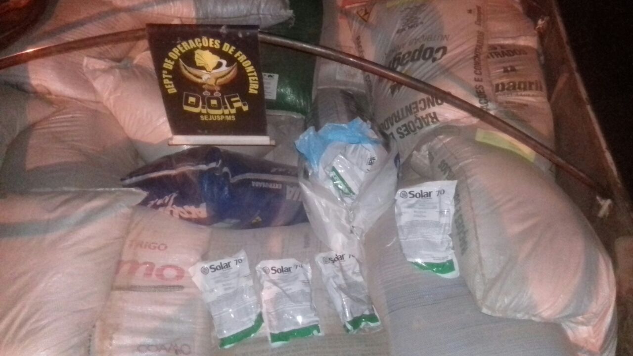 Tacuru (MS) – Policiais do Departamento de Operações de Fronteira (DOF) apreenderam na madrugada de terça-feira (5), por volta de 1h, um caminhão Scania de cor vermelha acoplado a um semirreboque transportando agrotóxico contrabandeado do Paraguai e