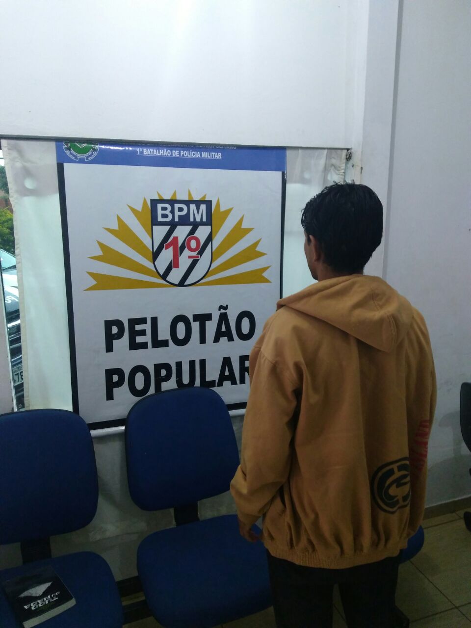 Campo Grande (MS) Nesta quinta -feira por volta das 17h durante rondas pelo bairro Jardim Aeroporto na rua Araioses a equipe do Pelotão Popular composta pelo CB PM Rezende e o SD PM Martins realizava abordagem ao autor de 32 anos que checado via CIOPS