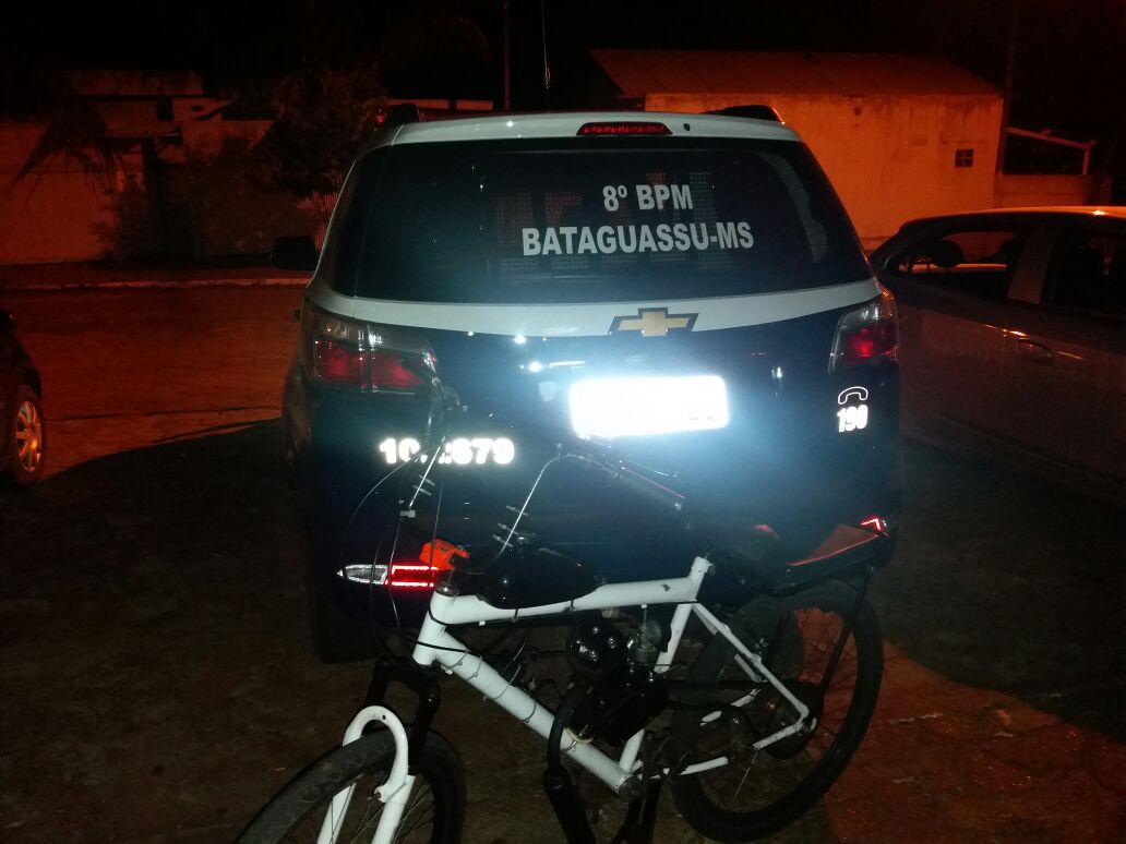 Nova Andradina (MS) – No final da noite de ontem (20) por volta das 23hs, uma equipe da Polícia Militar de Bataguassu realiza rondas de rotina pelas proximidades da Santa Casa de Misericórdia, quando avistaram um jovem conduzindo uma bicicleta adaptada