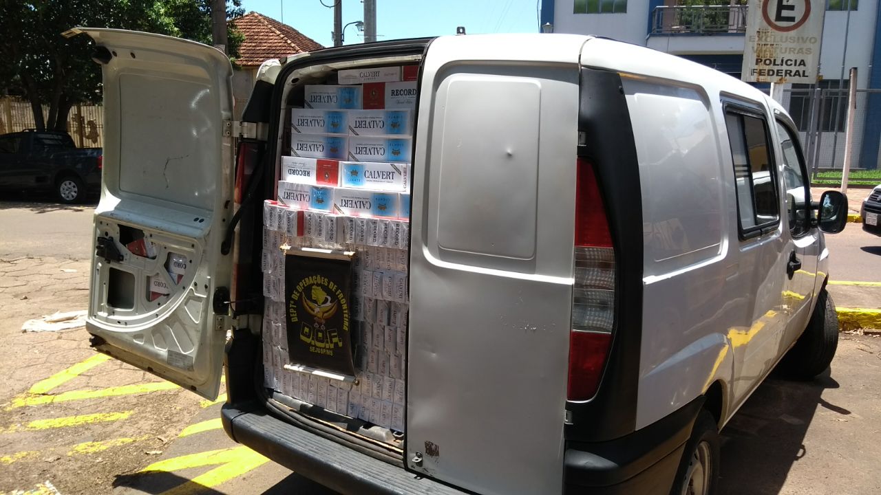 Ponta Porã (MS) – Policiais do Departamento de Operações de Fronteira (DOF) apreenderam na manhã de domingo (19), por volta das 7h30, um veículo Fiat Doblò de cor branca e placas de Vitória, ES transportando 2.500 pacotes de cigarros (50 caixas) de