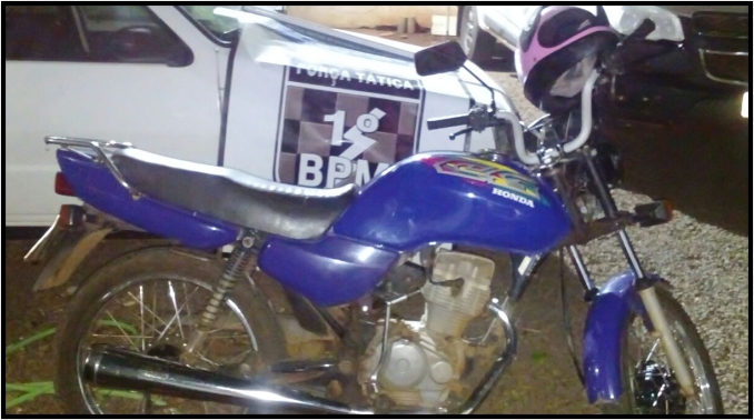 Amambai (MS) – 12h após ter sido furtada no município de Amambai, a Polícia Militar recuperou o objeto do furto – motocicleta, no município de Coronel Sapucaia (MS), na data de ontem 28 Out 17 (sábado). A Equipe de Serviço recebeu uma