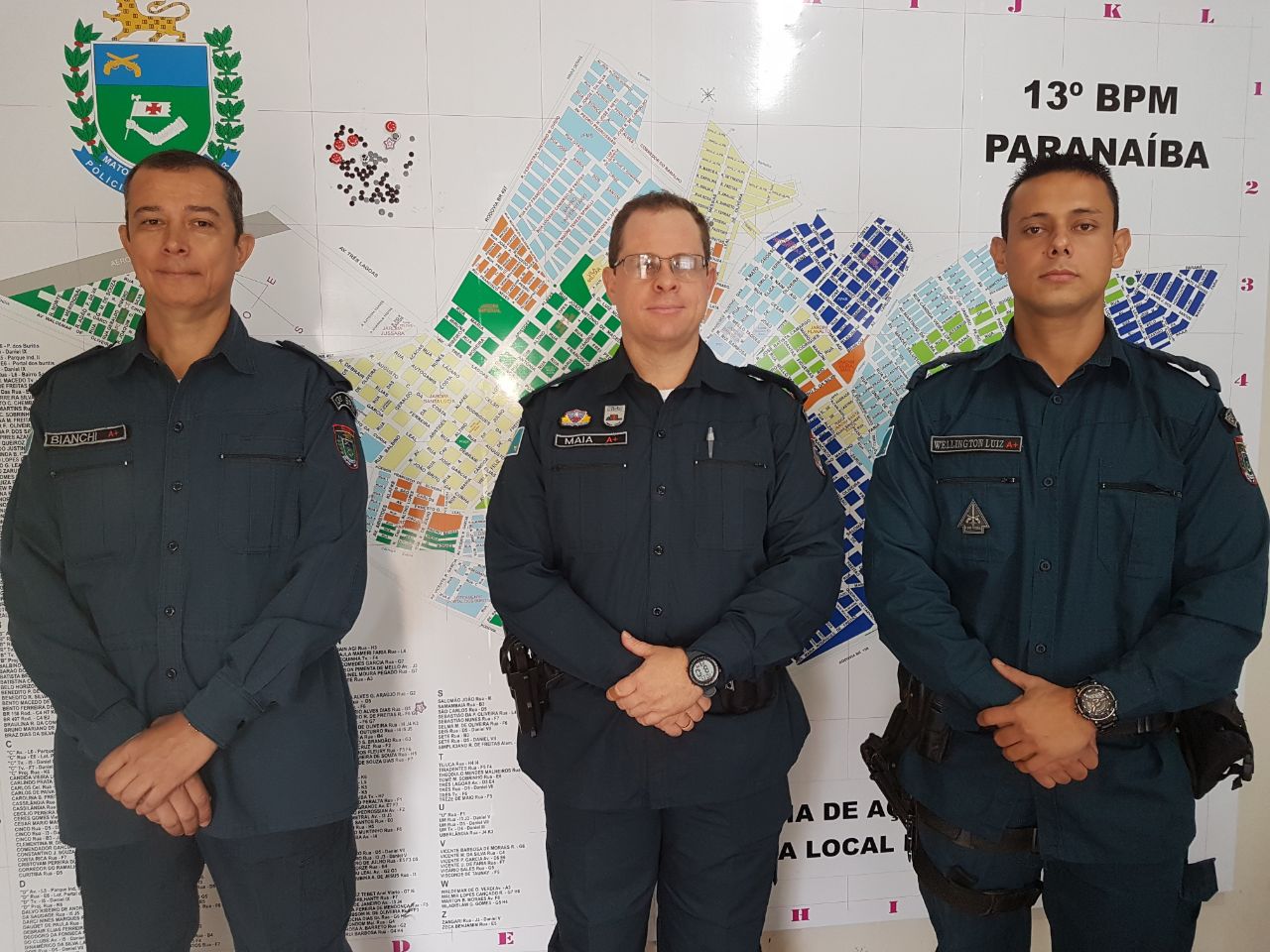 Campo Grande (MS) Nesta segunda – feira o Comandante do 1º BPM Tenente Coronel PM Mário Angelo Ajala e o Subcomandante Major QOPM Laudiney Cruz de Carvalho, receberam dois novos oficiais que concluíram o Curso de Formação de Habilitação de
