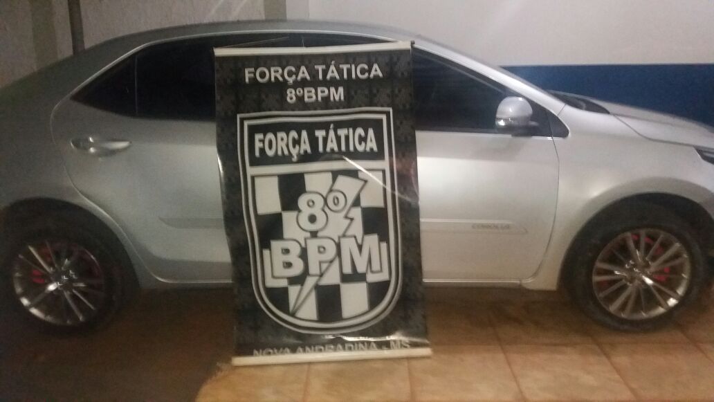 Nova Andradina (MS) – No final da tarde de ontem (23), por volta das 18hs, uma equipe da Força Tática da Polícia Militar de Nova Andradina recebeu informações sobre um veículo Toyota/Corola que possivelmente seria dublê e estaria circulando pelas
