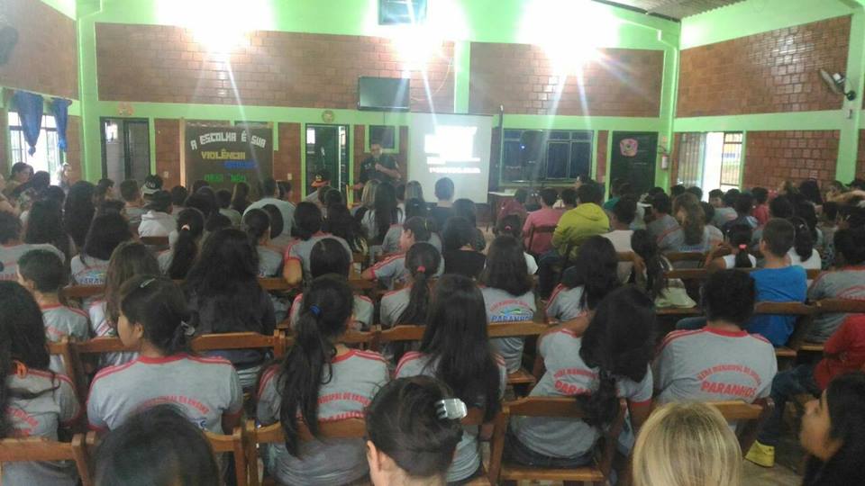 Os policiais militares Sgt PM Geraldo Silva, Sd PM Adelino, Sd PM Maicon e Sd PM Carina, no dia 19 Out 17, em parceria com o Serviço de Convivência e Fortalecimento de Vínculos, o Conselho Tutelar, o Departamento de Cultura e a Secretaria de Educação de