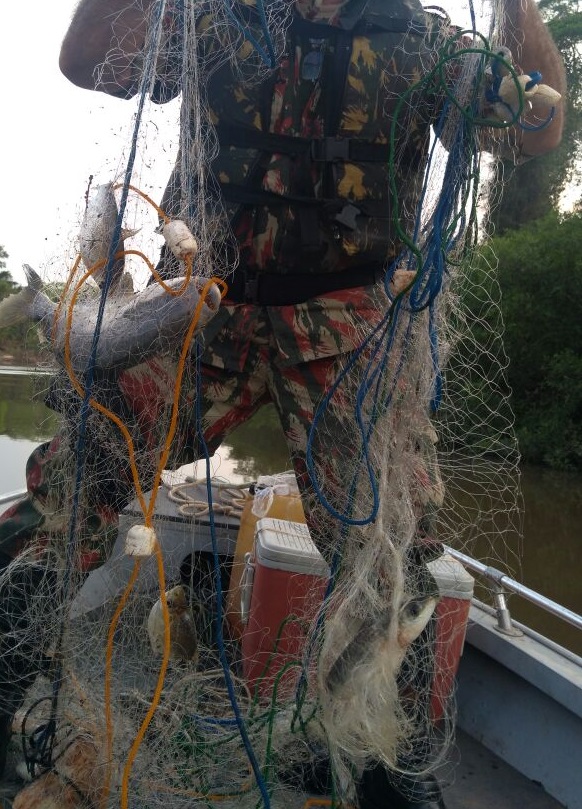 Campo Grande (MS) – Durante fiscalização fluvial no rio Aquidauana, visando a prevenção à pesca predatória, na operação Pesque Legal, realizada pela PMA, SEMAGRO e IMASUL, dentro da operação Pacificador 67 (PMMS), uma equipe da Polícia Militar