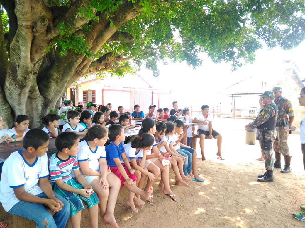 Campo Grande (MS) – Policiais Militares Ambientais de Bela Vista realizaram trabalhos de Educação Ambiental para alunos da uma escola municipal rural, localizada na fazenda Margarida, no Distrito de Alto Caracol. Os trabalhos ocorreram hoje (7) na