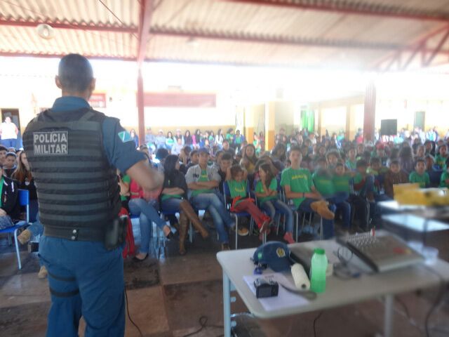 Amambai (MS) – Na manhã desta terça-feira (03) o soldado PM Adelino, que também é instrutor do Programa Educacional de Resistência às Drogas – PROERD, ministrou uma palestra para alunos dos anos finais do ensino fundamental e do ensino médio da