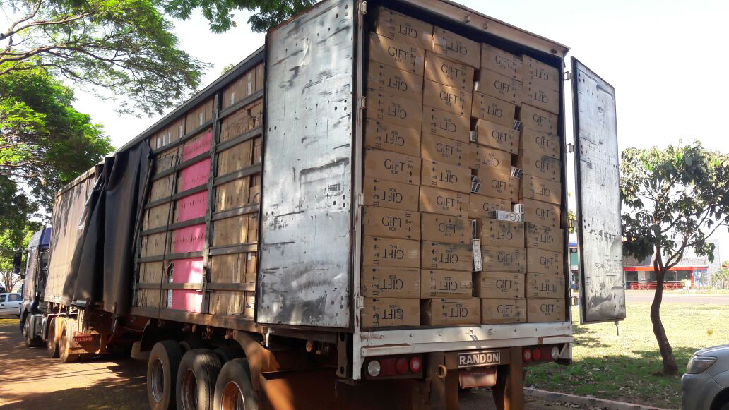 Caarapó (MS) – Policiais do Departamento de Operações de Fronteira (DOF) apreenderam na madrugada de sexta-feira (22), por volta das 0h10 um caminhão trator atrelado a uma carretas transportando mais de 60 mil pacotes de cigarros de origem estrangeira,