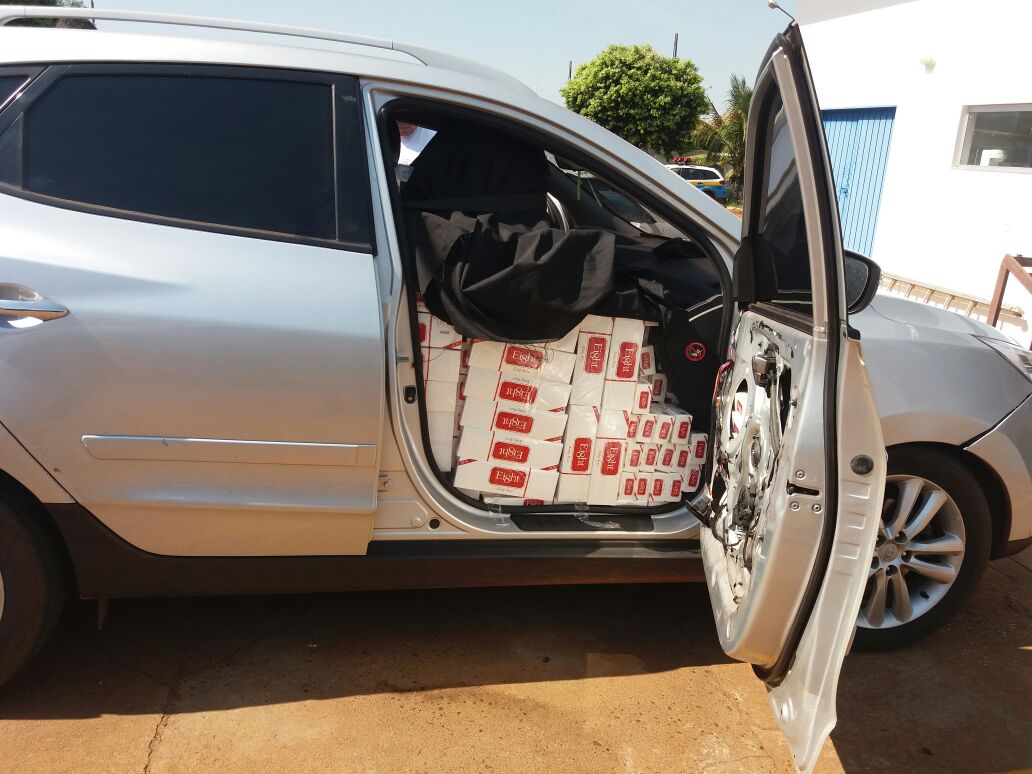 Três Lagoas (MS) – No dia (13/09), por volta das 09h30min, Policiais Militares do Pelotão de Brasilândia apreenderam um veículo carregado com cigarros. A guarnição realizava rondas pela cidade, quando um veículo Hyundai IX35 de cor prata passou pela