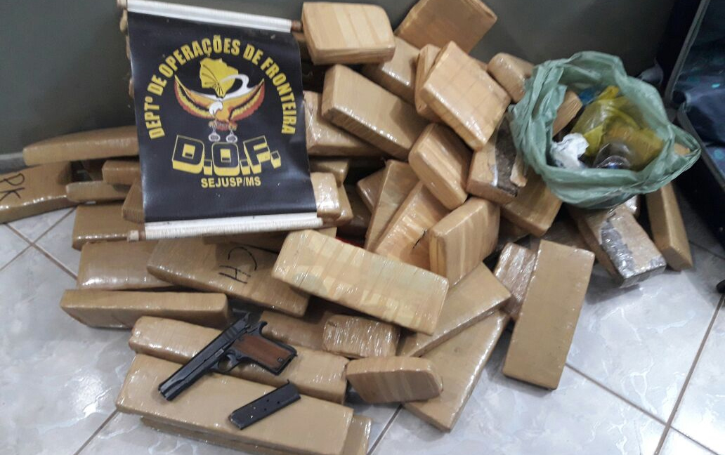 Eldorado (MS) – Policiais do Departamento de Operações de Fronteira (DOF) apreenderam na tarde de terça-feira (12), por volta das 14h45, 85 quilos de uma substância orgânica aparentando ser maconha, 49 porções de haxixe com peso total de 500 gramas e
