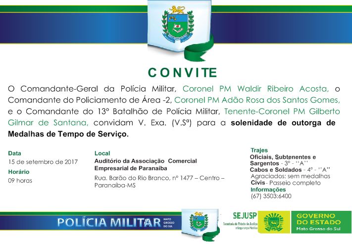 O Comandante-Geral da Polícia Militar, Coronel PM Waldir Ribeiro Acosta, o Comandante do Policiamento de Área -2, Coronel PM Adão Rosa dos Santos Gomes, e o Comandante do 13º Batalhão de Polícia Militar, Tenente-Coronel PM Gilberto Gilmar de Santana,