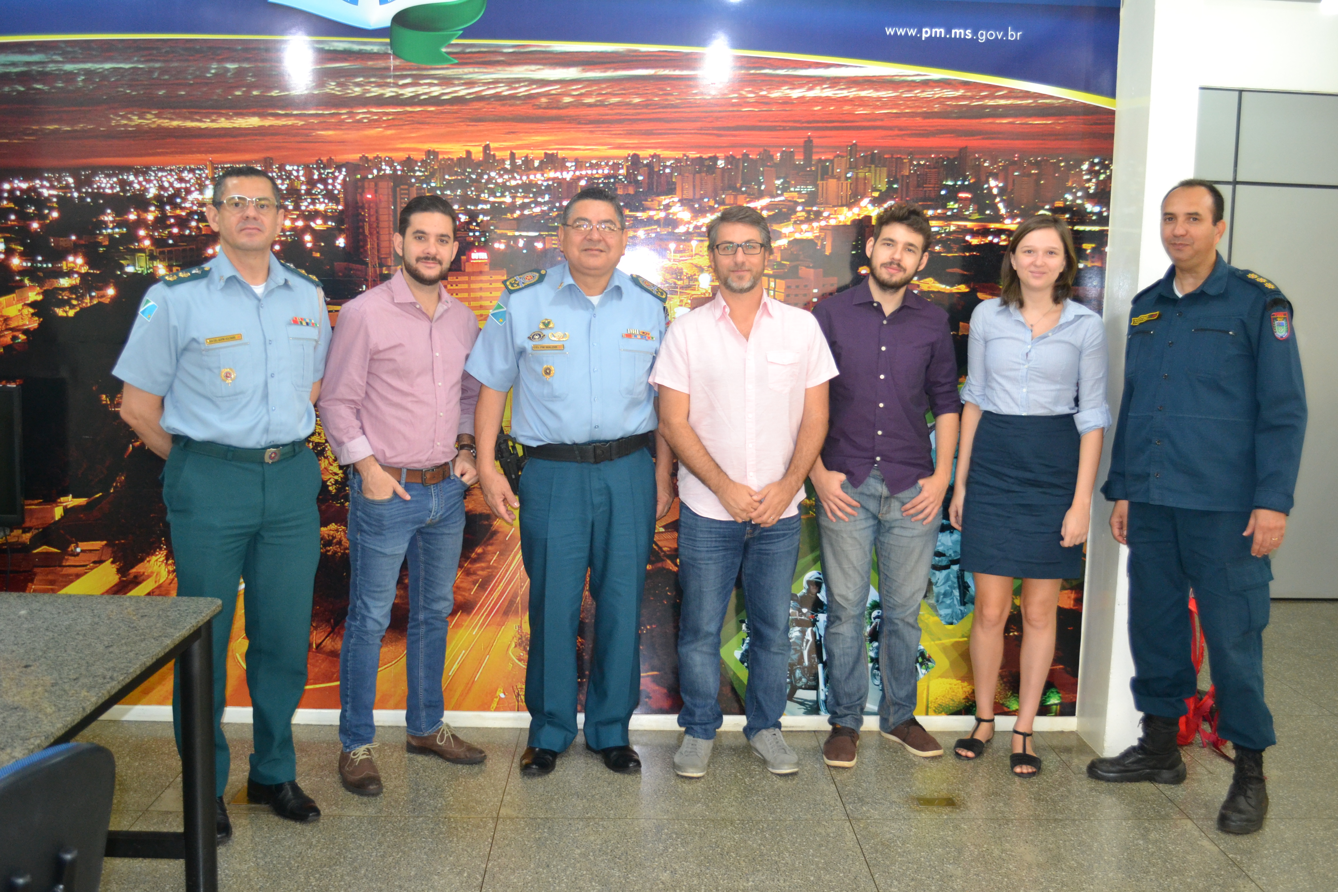 Campo Grande (MS)- Na manhã desta quinta-feira (31/08), o Comandante-Geral da Polícia Militar do Estado de Mato Grosso do Sul, coronel PM Waldir Ribeiro Acosta, recebeu Eduardo Fagre, da Corporação Andina de Fomento (CAF), Cláudio Ferraz, Professor da