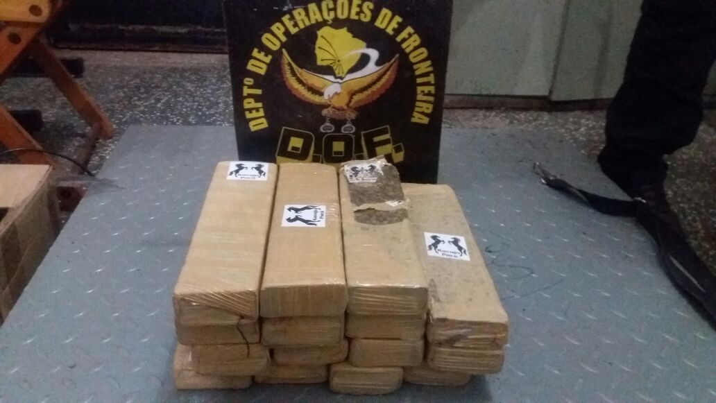 Coronel Sapucaia (MS) – Policiais do Departamento de Operações de Fronteira (DOF) apreenderam na tarde de domingo (27), por volta das 15h40, uma mochila preta com quinze tabletes de uma substância orgânica aparentando ser maconha, com peso total de 10