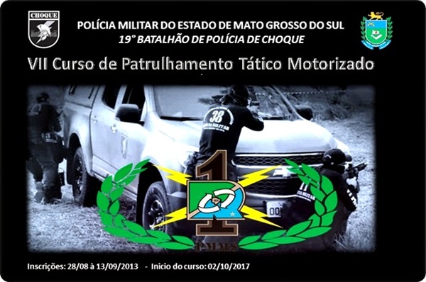 Campo Grande (MS) – A Polícia Militar do Estado de Mato Grosso do Sul, através do 19° Batalhão de Polícia de Choque, abriu inscrição para o VII Curso de Patrulhamento Tático Motorizado – PATAMO. O Curso tem por finalidade de especializar os