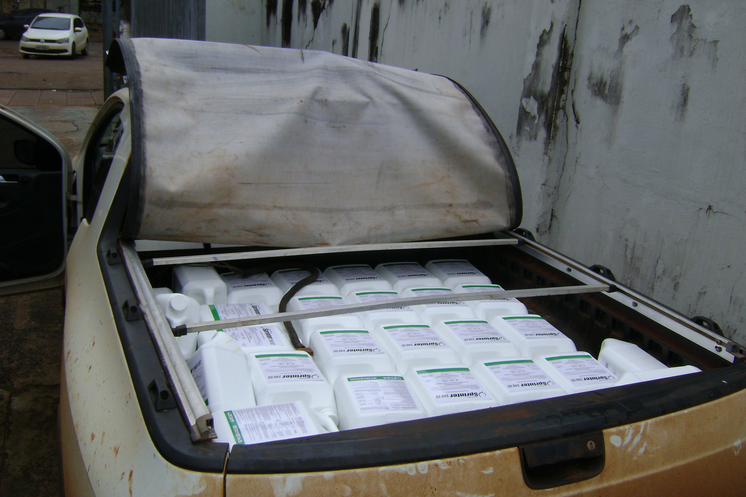 Campo Grande (MS) – Policiais Militares Ambientais de Dourados foram acionados hoje (18) pela Polícia Federal de Ponta Porã e autuaram administrativamente (multa) o responsável por uma carga de 30 kg e 400 Litros de herbicida (produtos perigosos),