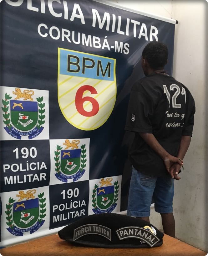 Corumbá (MS) – Sexta-feira (18), por volta das 12:00 horas, a equipe de força tática em rondas pela área central de Corumbá, avistou um indivíduo em atitude suspeita ao lado de um carro. Com a experiência e calma o indivíduo foi abordado e revistado