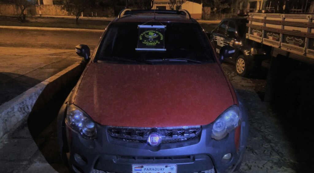Coronel Sapucaia (MS) – Policiais do Departamento de Operações de Fronteira (DOF) recuperaram na tarde de quinta-feira (17), por volta das 17h30, um veículo Fiat Strada de cor vermelha e placas falsas do Paraguai. O condutor, um cidadão paraguaio, foi