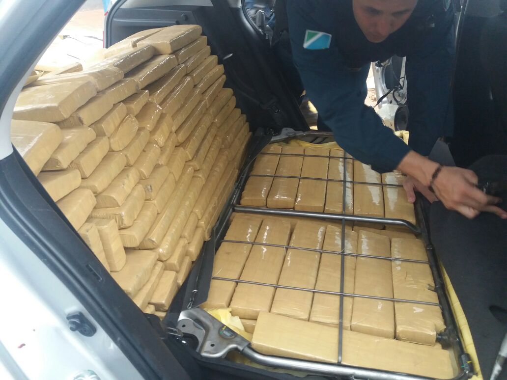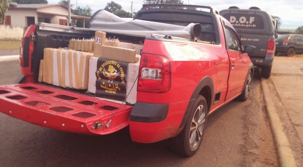 Amambai (MS) – Policiais do Departamento de Operações de Fronteira (DOF) apreenderam na tarde de domingo (13), por volta das 15h50, um veículo VW Saveiro vermelho, com registro de Roubo/Furto no Paraná, carregado com vários tabletes de uma substância
