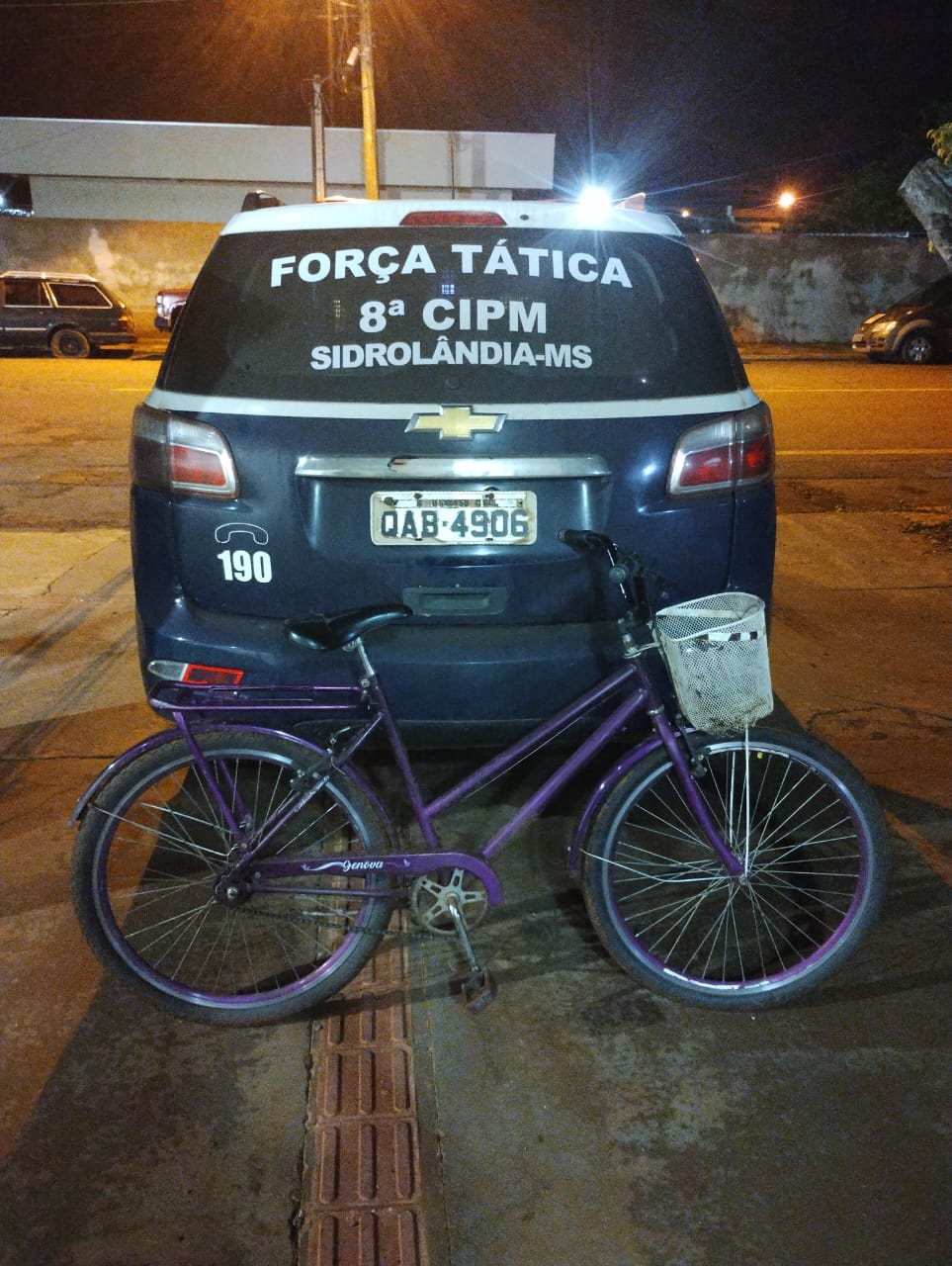 Sidrolândia (MS) – Equipe de Força Tática da 8ª Companhia Independente de Polícia Militar, na noite da quarta-feira (01), recupera bicicleta furtada. A equipe de Rádio Patrulha foi acionada via 190 para uma ocorrência de tentativa de furto à