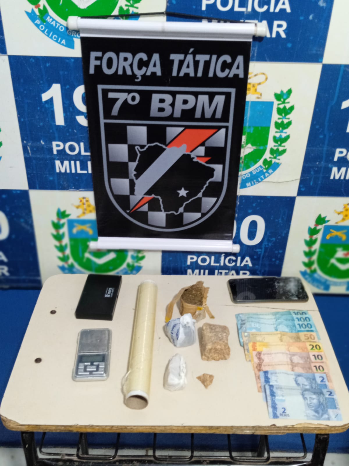 Aquidauana (MS) – Equipe da Força Tática do 7º Batalhão de Polícia Militar prende homem por tráfico de drogas no Bairro Alto. Nesta quarta-feira (01/02), por volta das 18h30min, os militares receberam o conhecimento de que um homem que estaria